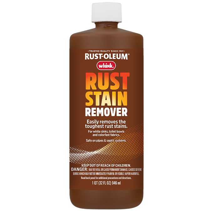 Rust-Oleum® Whink® Rust Stain Removers eliminate tough rust stains on white toilets, sinks and colorfast fabrics and carpets. The powerful liquid formula is easy to use — just apply, rinse with cold water and watch stains disappear.