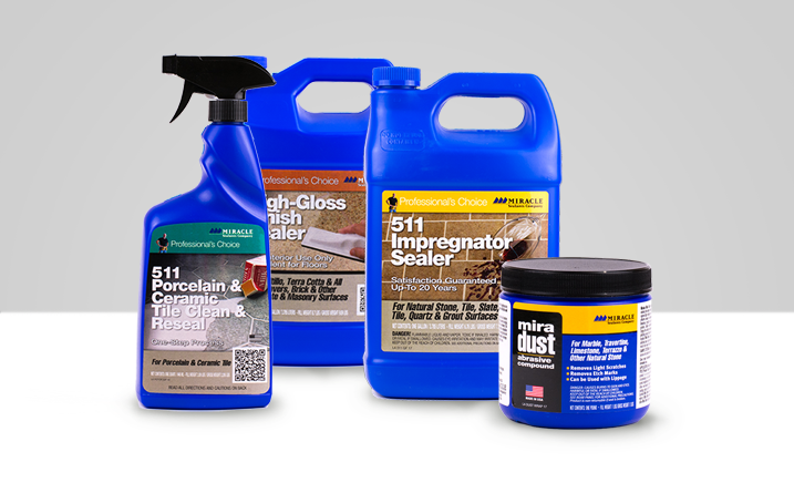 Miracle Sealants products include grout cleaners, tile cleaners and floor cleaners. Specialty formulas are also designed to clean specific surfaces, such as countertops, and reinforce the existing grout and tile seal.