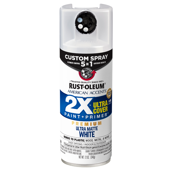 American Accents 2X Ultra Cover spray paint provides superior coverage for any project around the home. The Paint + Primer technology allows projects to finish faster so you can enjoy it sooner. 2X Ultra Cover is great for indoor/outdoor use and is available in a variety of on-trend colors.