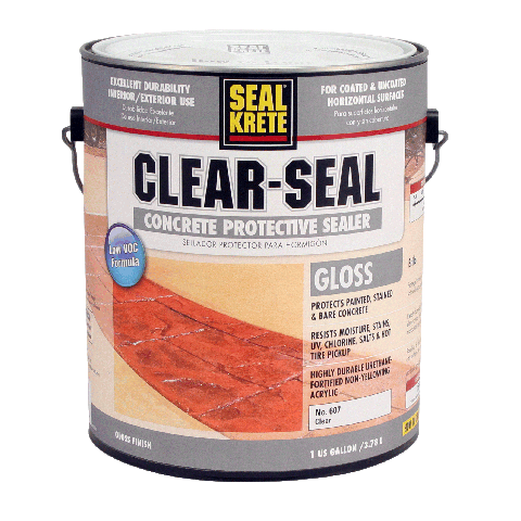 SEAL-KRETE® Clear-Seal Concrete Protective Sealer is a ready-to-use premium sealer that penetrates deeply to seal and protect painted, stained or bare concrete. It goes on milky white and dries to a clear finish, enhancing the natural character of your surface. Clear-Seal is a durable urethane-fortified acrylic sealer with low odor, and low VOCs, so it’s easy to work with and safe for the environment. It has excellent chemical resistance and repels stains, making it ideal for pool decks, patios, porches, driveways, garages or anywhere you want to protect and beautify painted, stained or bare concrete. Available in satin or gloss sheens.