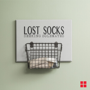 Put the fun in functional with this stenciled Lost Socks sign that accompanies a basket for mismatched socks.