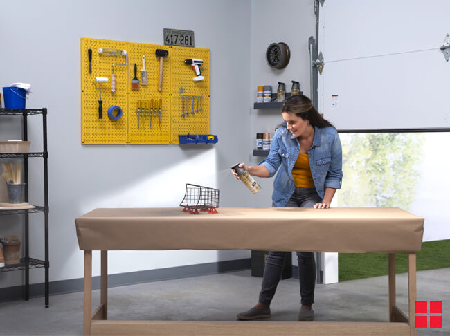 3. To paint the basket, follow the instructions on the can of Rust-Oleum Universal Spray Paint (we used Gunmetal Gray). Shake the can for 60 seconds after mixing ball begins to rattle. Hold the spray paint can 8-12” from the surface and spray in a steady, back-and-forth motion, slightly overlapping each stroke. Apply two or more light coats a few minutes apart.