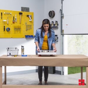 4. Once the paint is dry, attach the basket to the sign and hang it in your laundry room.